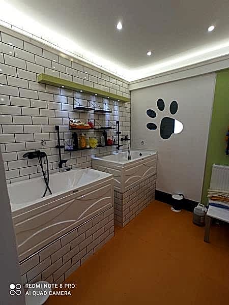Öncelikle tasarımı yapılarak dünyadaki örnekleri inceledik. Hayvan dostlarımızın hoşlanabileceği renkleri, desenleri seçtik. Kuaför salonu yanı sıra, Türkiye’nin farklı yerlerinden gelecek öğrenciler için eğitim salonu yaptık. Yine Türkiye’de görülmemiş bir spa odasını bu projede yaptık.